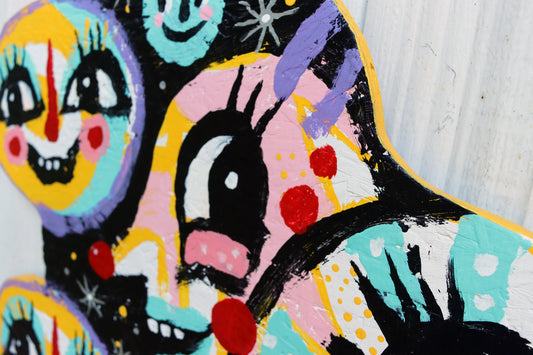 Each are silkscreened and hand painted by the artist. All are uniquely original. Signed and Numbered.